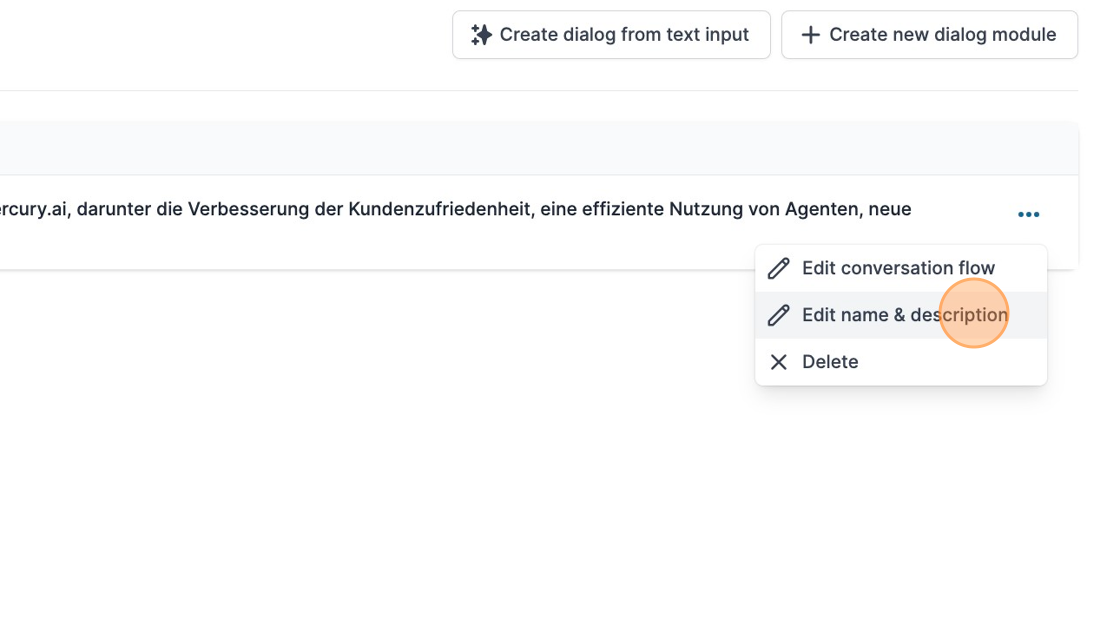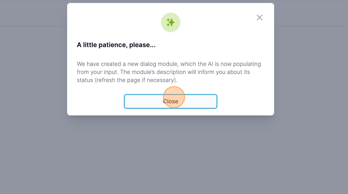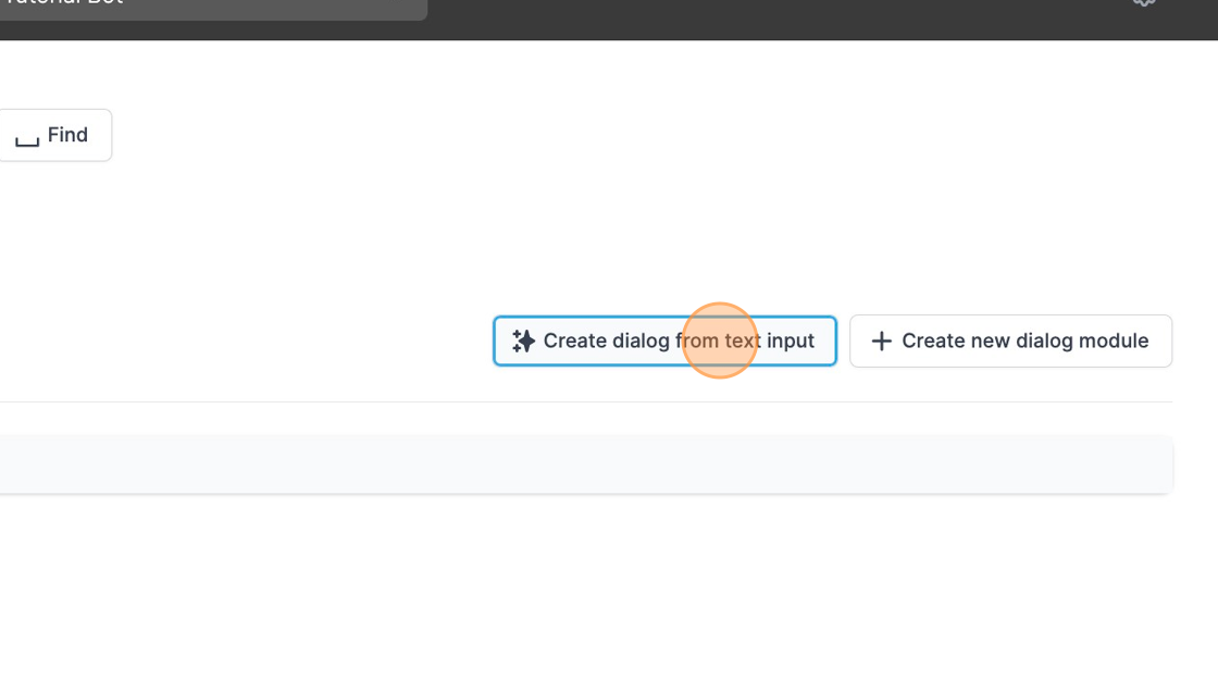 2. Dann gibt es oben rechts den Button “Create dialogue modul from text input”. Diesen wählen wir aus.